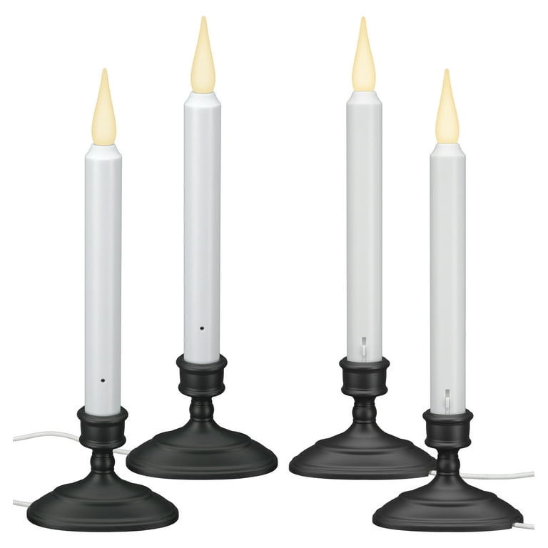 Amazon Com Battery Operated Led Window Candles With Streetside Brightness Dual Led Bulb With Daily Timer And Adjustable Height Black Home Kitchen